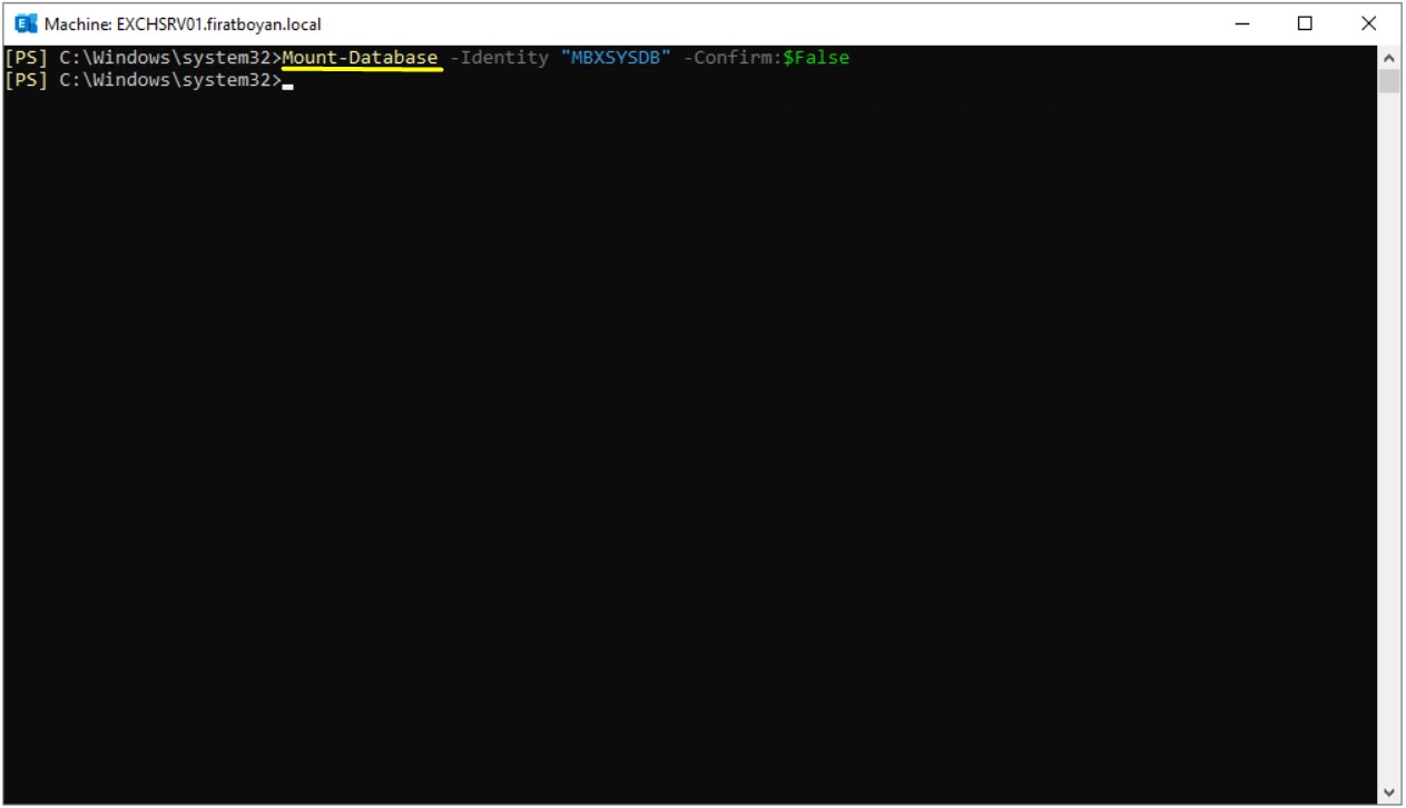 Mount-Database -Identity "MBXSYSDB" -Confirm:$False |